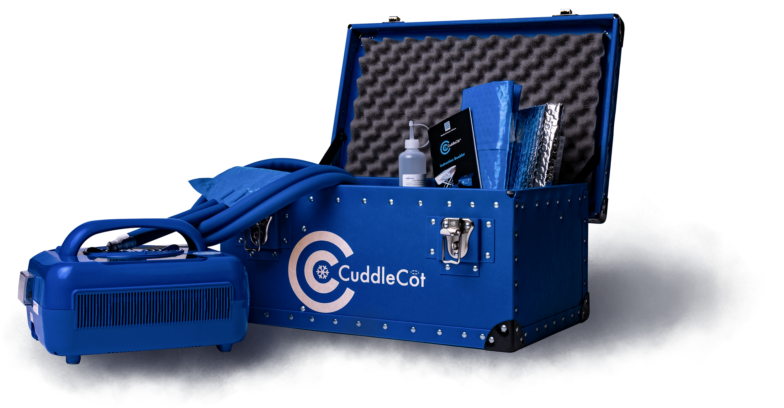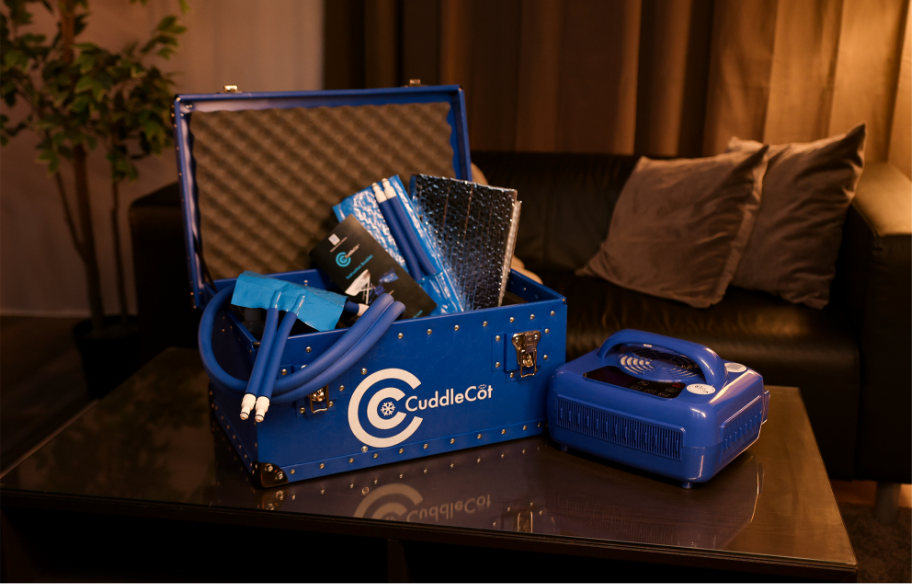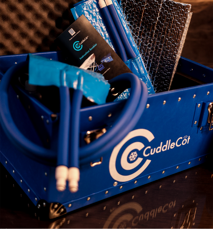Notre système de refroidissement mobile CuddleCot™ permet de refroidir rapidement, facilement et de façon mobile les enfants-étoiles. Les parents peuvent dire au revoir à leur enfant dans un environnement familier, sans contrainte de temps, de manière affectueuse et individuelle. Avec le système de refroidissement mobile CuddleCot™, il n’est pas nécessaire d’assurer un refroidissement régulier du bébé.